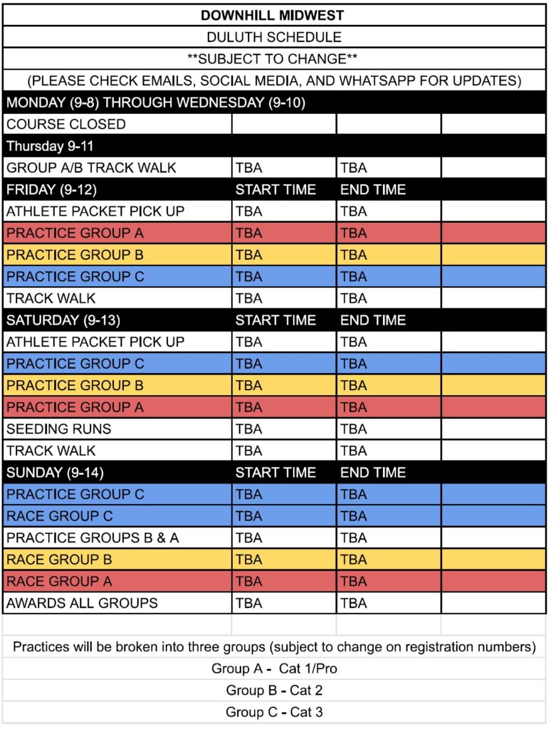 Cat 3 will be allowed to practice all day Friday and Saturday, and won’t have Seeding Runs or Track Walk. Their course will also be open to the public Friday and Saturday.