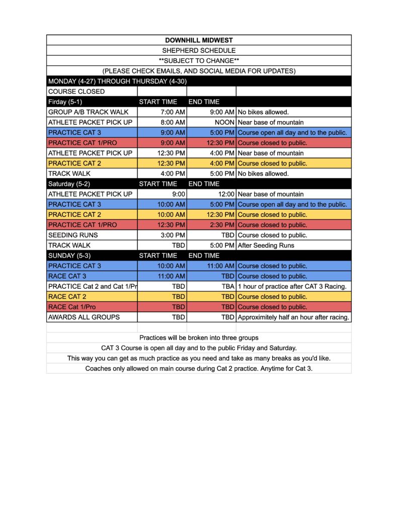 2026 Downhill Midwest Series Rules